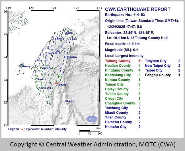 Please note that Taiwan is geographically moving slowly towards the China mainland, and the two sides are expected
