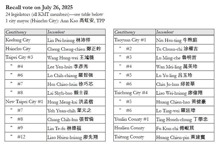 Aug. 16 (Sat): Former ROC VP Annette Lu 呂秀蓮 suggests that ROC President Lai Ching-te resigns