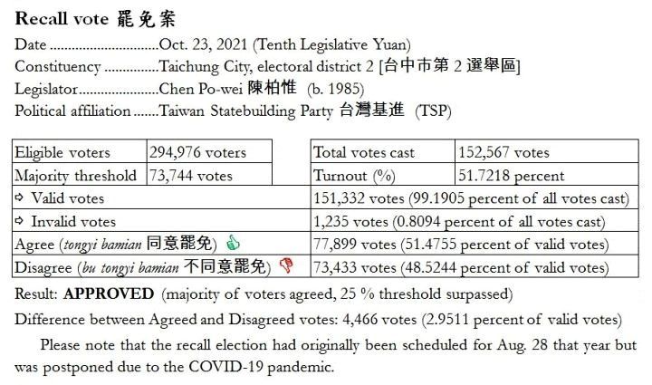 the Taiwan Statebuilding Party (Taiwan jijin 台灣基進), the Taiwan Obasang Political Equality Party (xiaomin