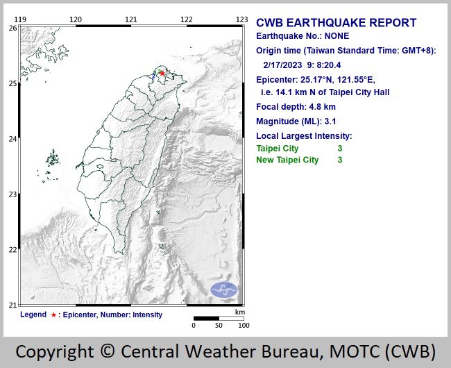 July 14 (Tue): A team of seismologists at the Taiwan Volcano Observatory (datun huoshan guancezhan 大屯火山觀測站, abbrev. TVO)