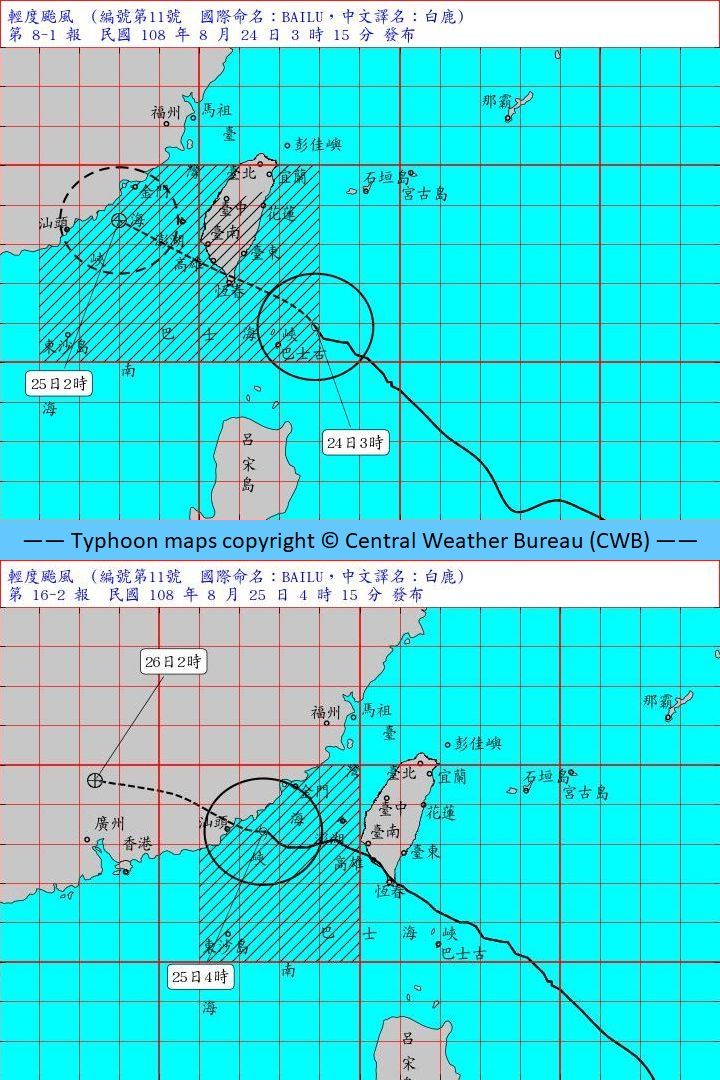 before the beginning of this news timeline being typhoon Bailu [白鹿], made landfall on Aug. 24, 2019).