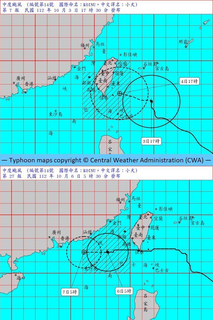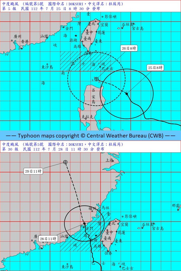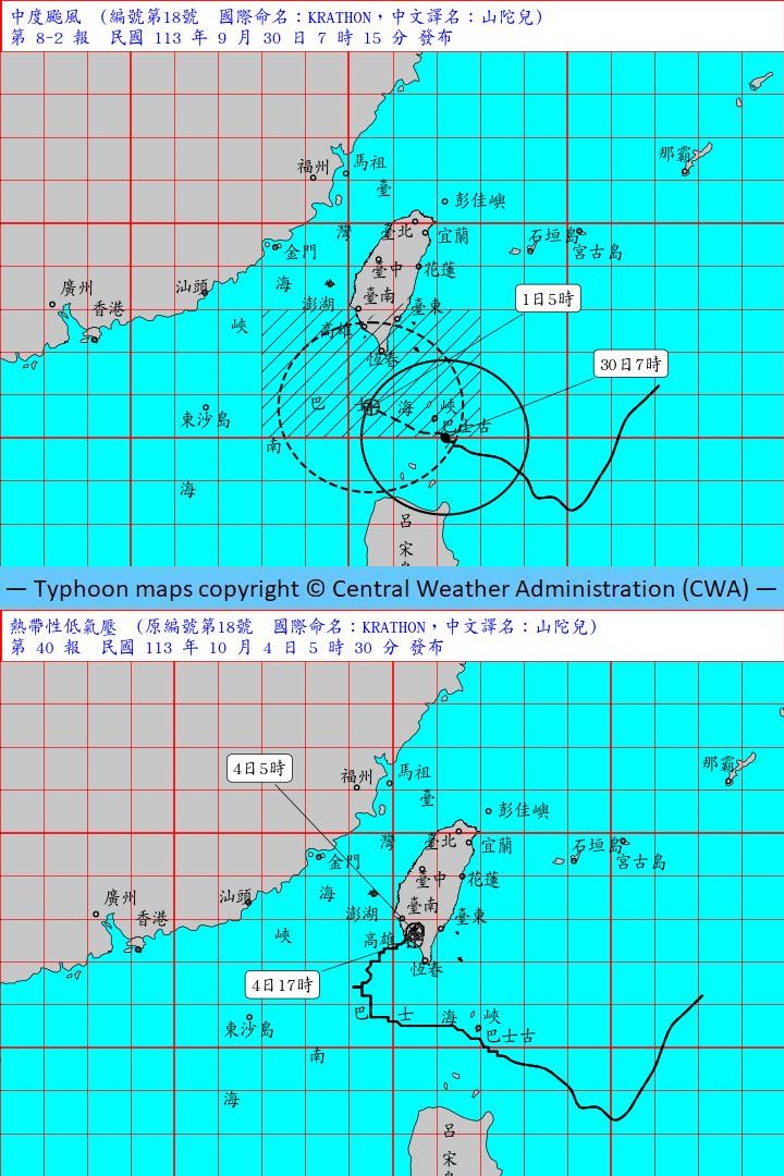 Typhoons—only those that actually made landfall on Taiwan (the last one