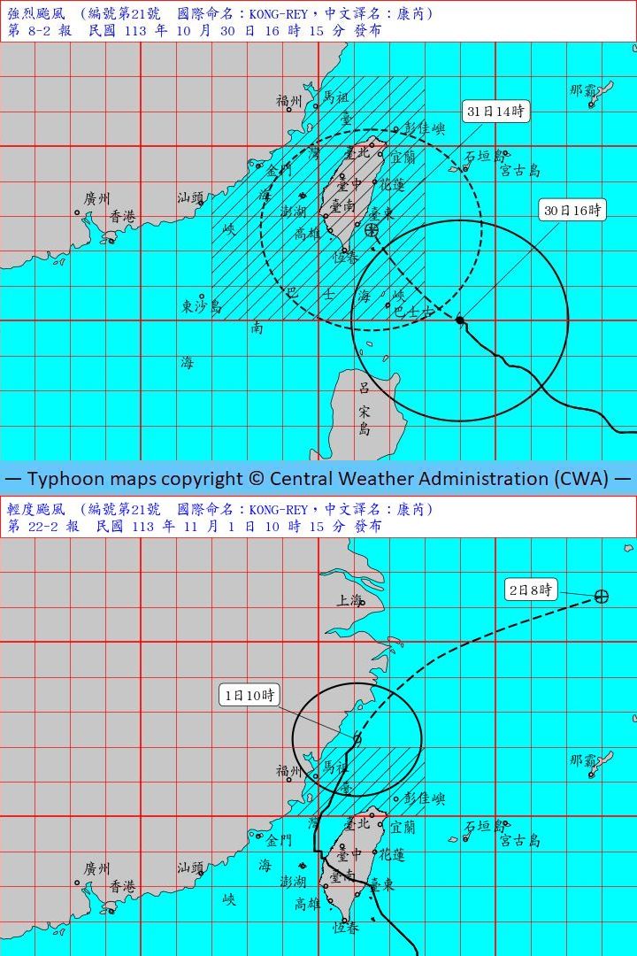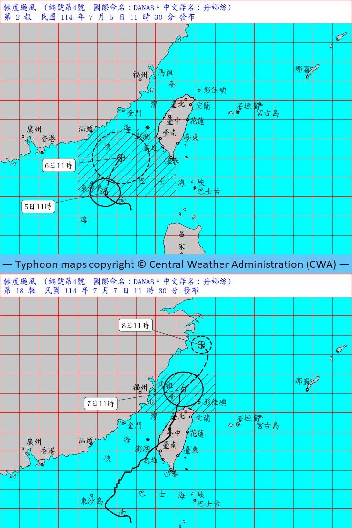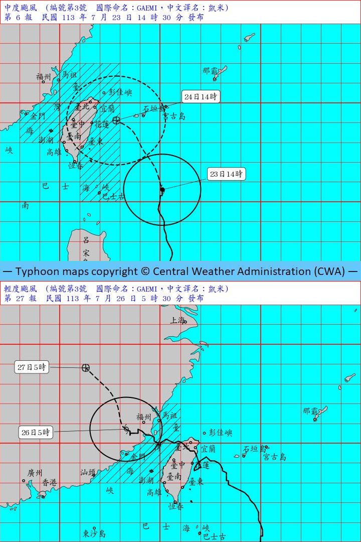 Aug. 3 (Sun): The CWA reports that torrential rain in central and southern Taiwan