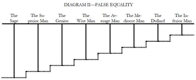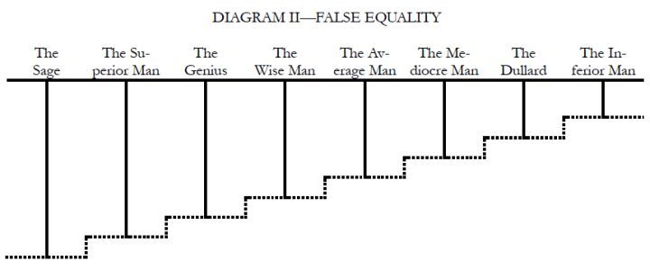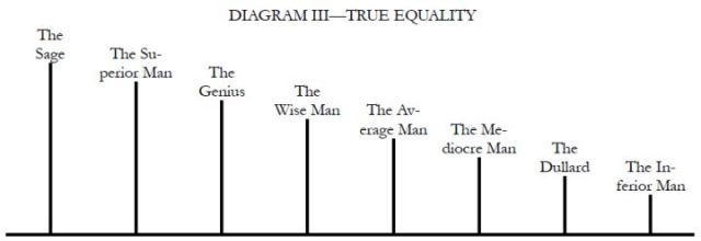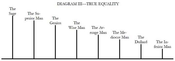 TOP HOME [◆ Three Principles] [Democracy] The Principle of Democracy: Lecture Three [March 23, 1924]MIN-CH'UAN, the People's Sovereignty, is the second part of our revolutionary watchword and corresponds to equality in the French watchword. So to-day let us take equality as the theme for our study. The word "equality" is usually associated with the word "liberty." During the former revolutions in the various countries of Europe, all the people expended an almost equal amount of strength and sacrified to a similar degree in their fight for liberty and equality, and consequently they valued equality as much as they did liberty. Moreover, many people felt that if they could secure liberty, they would certainly attain to equality, and that if they did not become equal, there was no way to manifest their freedom; they regarded equality as being even higher than liberty. What is equality and whence does it come? The revolutionary philosophy of Europe and America spoke of liberty as something bestowed by Nature upon man. For example, the "Declaration of Independence" of the American Revolution and the "Declaration of the Rights of Man and of the Citizen" of the French Revolution both pronouncedly and emphatically proclaimed that liberty and equality were natural and inalienable rights of man. Are men really born with the special right of equality? We traced the history of people's rights from the age of primitive man millions of years ago down to the beginning of our modern democratic period, but we did not discover any principle of natural human equality. In the world of Nature we do not find any two things level, except upon the surface of water. On level ground there is no place truly level. The railway runs through a natural plane: but if you look out of your coach window along the way and observe carefully the contour of the land, you will find that there is not a mile of track but has required human labor and engineering to make it level. Nature originally did not make man equal; but when autocracy developed among mankind, the despotic kings and princes pushed human differences to an extreme, and the result was an inequality far worse than Nature's inequality. The inequality created by kings and princes was an artificial inequality. To illustrate the conditions it resulted in, let me draw a diagram on the blackboard here: Study this diagram carefully and you will understand what artificial inequality meant. Because of these artificial ranks, the specially privileged classes became excessively cruel and iniquitous, while the oppressed people, unable to contain themselves, finally broke into rebellion and warred upon inequality. The original aim in the revolutions had been the destruction of man-made inequalities; when that was completed, men thought their revolution would be over. But the men who occupied the high stations of emperor and king all assumed a divine appointment as a shield for their office; they said that they had received their special position from God and that the people who opposed them would be opposing God. The ignorant masses, who did not study to see whether there were any truth or not in these words, followed on blindly and fought for more privileges for their kings. They even opposed the intelligent people who talked about equality and liberty. So the scholars who were supporting revolution had to invent the theory of nature-bestowed rights of equality and liberty in order to overthrow the despotism of kings. Their original purpose was to break down artificial, man-made inequalities. But in everything, certainly, "action is easy, understanding difficult"; the masses of Europe at that time believed that emperors and kings were divinely sent and had special "divine rights," and large numbers of ignorant folk supported them. No matter what methods or how much energy the small group of intelligent and educated people used, they could not overthrow the monarchs. Finally, when the belief that man is born free and equal and that the struggle for freedom and equality is the duty of everybody had permeated the masses, the emperors and kings of Europe fell automatically. But after their downfall, the people began to believe firmly in the theory of natural equality and kept on working day after day to make all men equal. They did not know that such a thing is impossible. Only recently, in the light of science, have people begun to realize that there is no principle of natural equality. If we acted according to the belief of the masses at that time, regardless of the truth, and forced an equality upon human society, that equality would be a false one. As this second diagram shows, we would have to level down superior position in order to get equality at the top, but the line representing the standing ground of these different types would still be uneven and not level. The equality we secured would be a false equality. Equal position in human society is something to start with; each man builds up his career upon this start according to his natural endowments of intelligence and ability. As each man has different gifts of intelligence and ability, so the resultant careers will be different. And since each man works differently, they certainly cannot work on an equal basis. This brings us to the only true principle of equality. If we pay no attention to each man's intellectual endowments and capacities and push down those who rise to a high position in order to make all equal, the world will not progress and mankind will retrocede. When we speak of democracy and equality but yet want the world to advance, we are talking about political equality. For equality is an artificial not a natural thing, and the only equality which we can create is equality in political status. After the revolution, we want every man to have an equal political standing, such as is represented by the base line in Diagram III. This is the only true equality and true principle of nature. The situation which